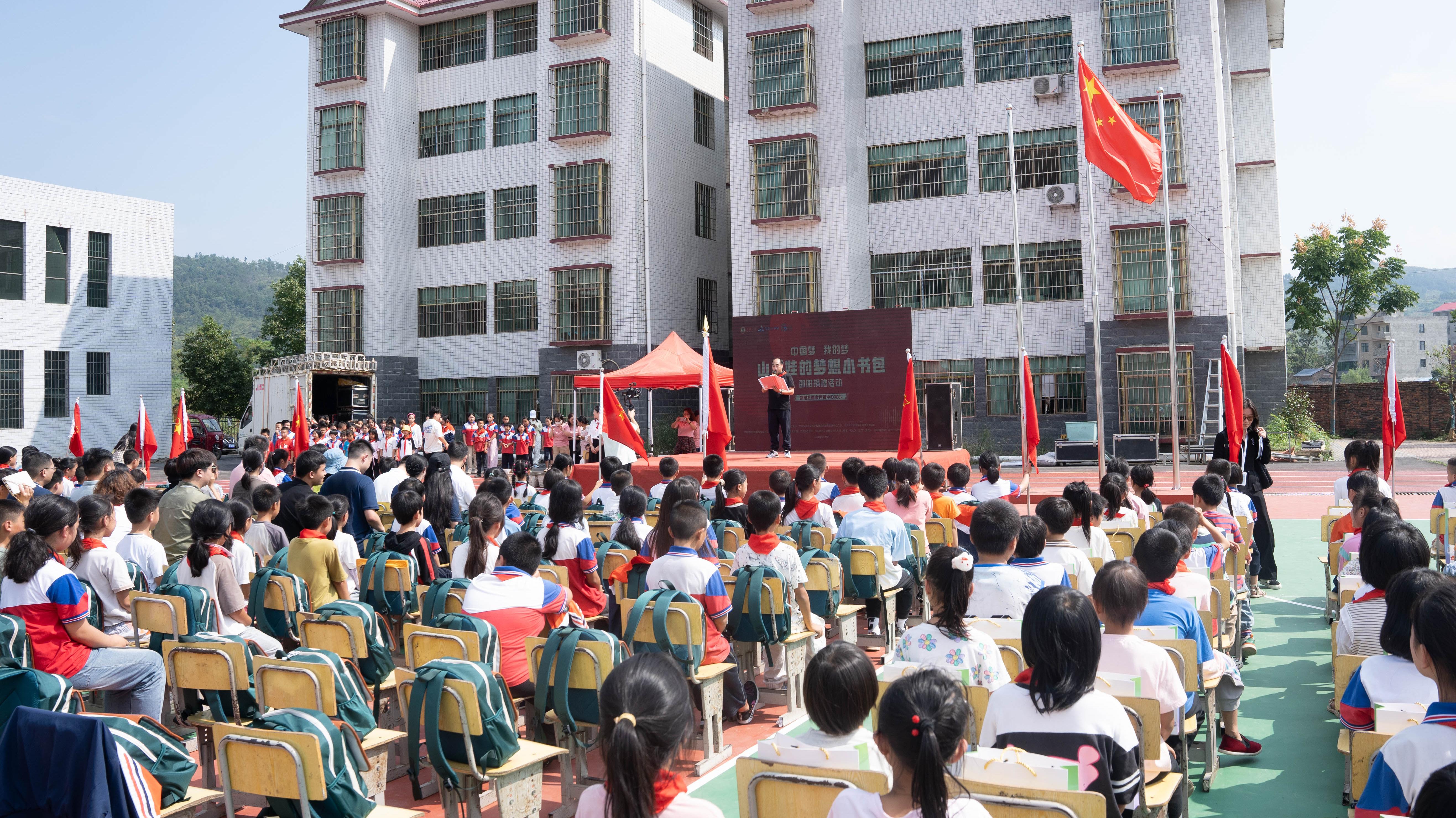 在新中国成立75周年华诞即将到来之际,为了点亮山里孩子的梦想,9月29日,“山里娃的梦想小书包”公益项目走进湖南省邵阳县郦家坪镇中心完全小学,为孩子们送去总价值8万元的“梦想小书包”等学习和生活用品。