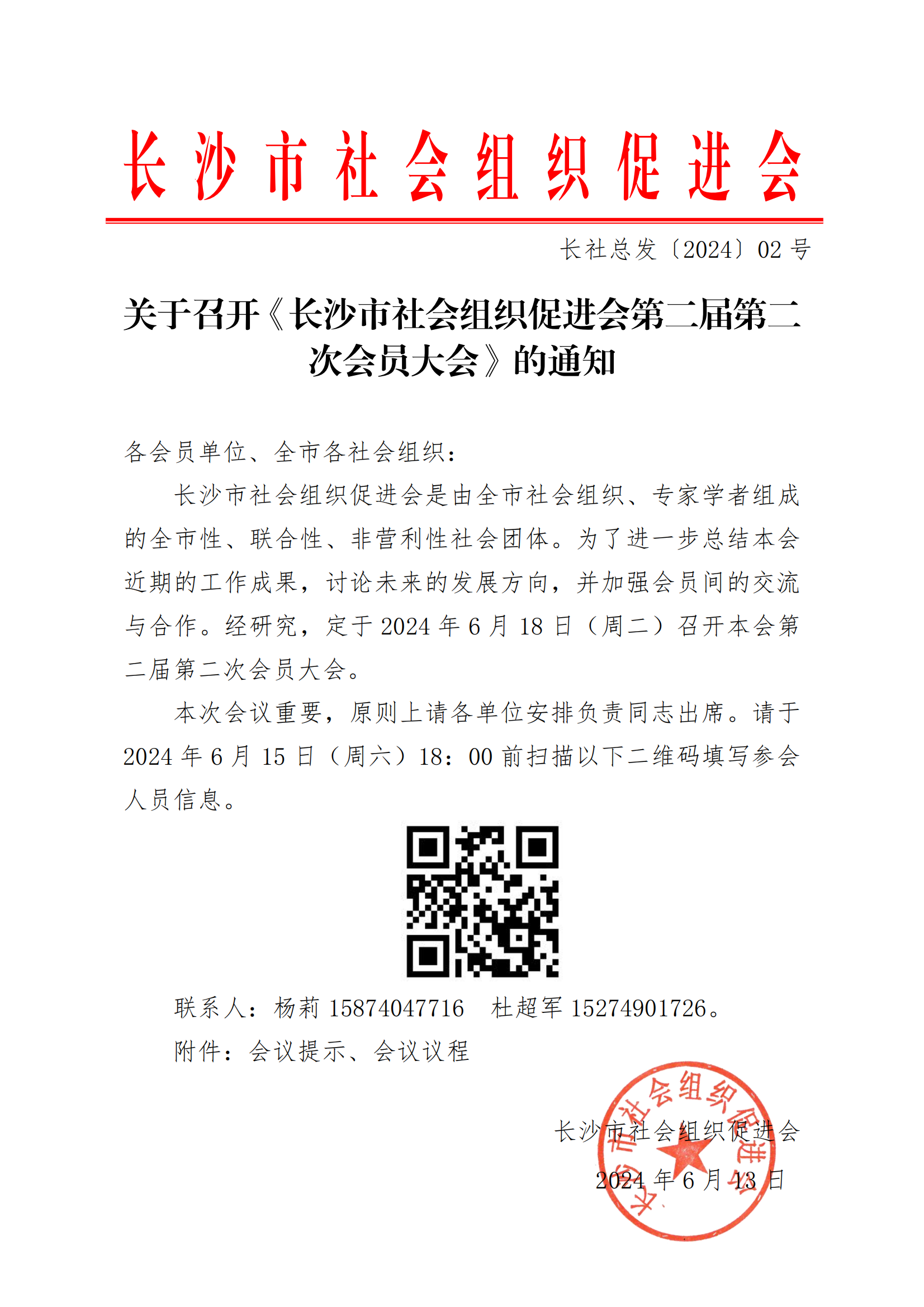 关于召开《长沙市社会组织促进会第二届第二次会员大会》的通知