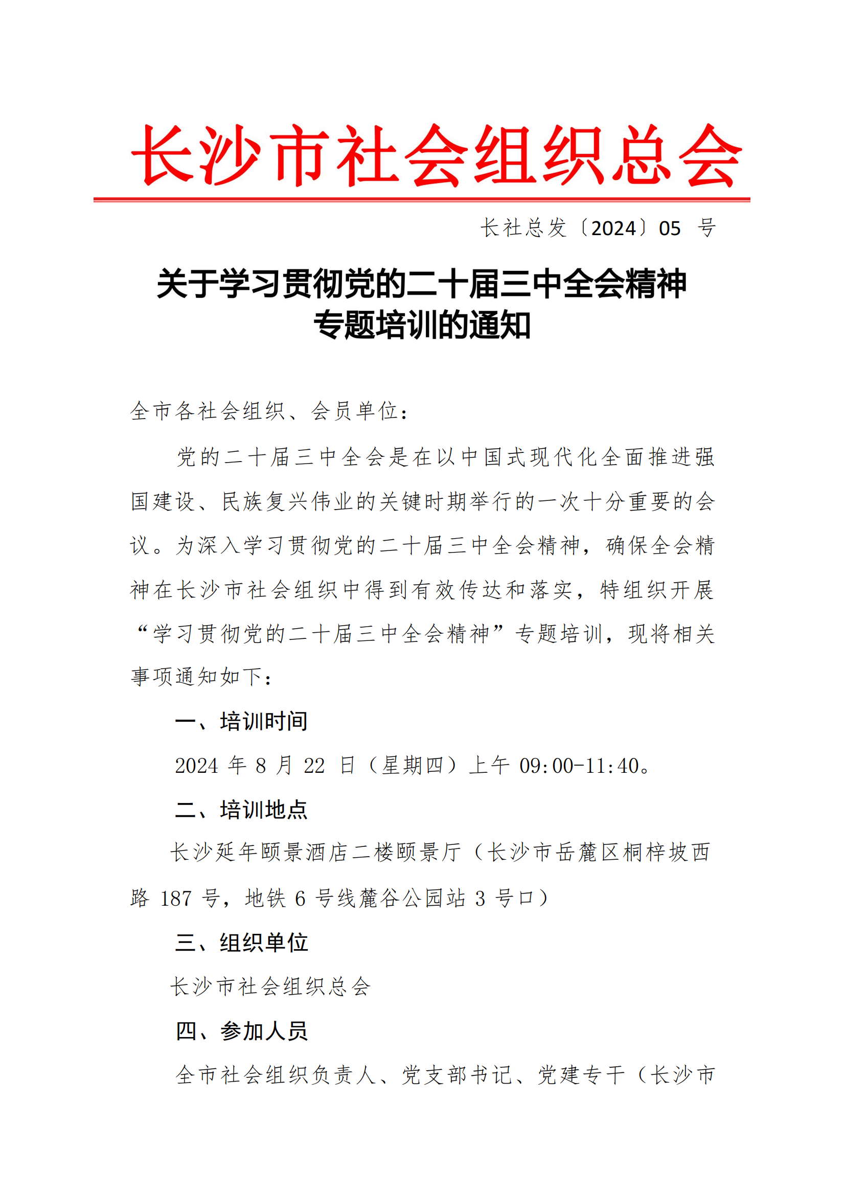 关于学习贯彻党的二十届三中全会精神专题培训的通知