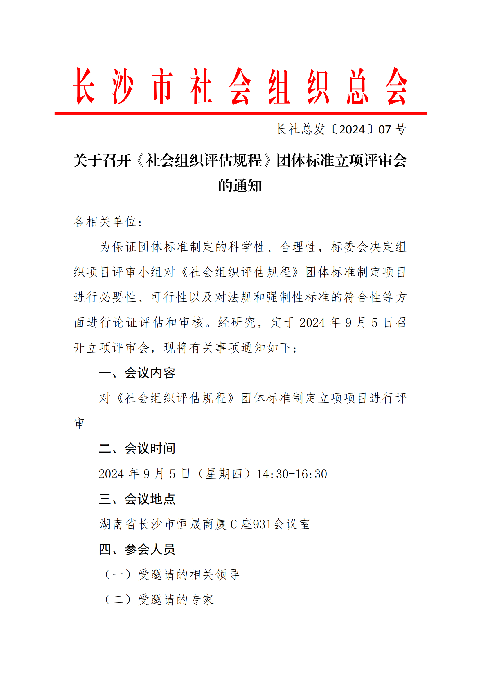 关于召开《社会组织评估规程》团体标准立项评审会的通知
