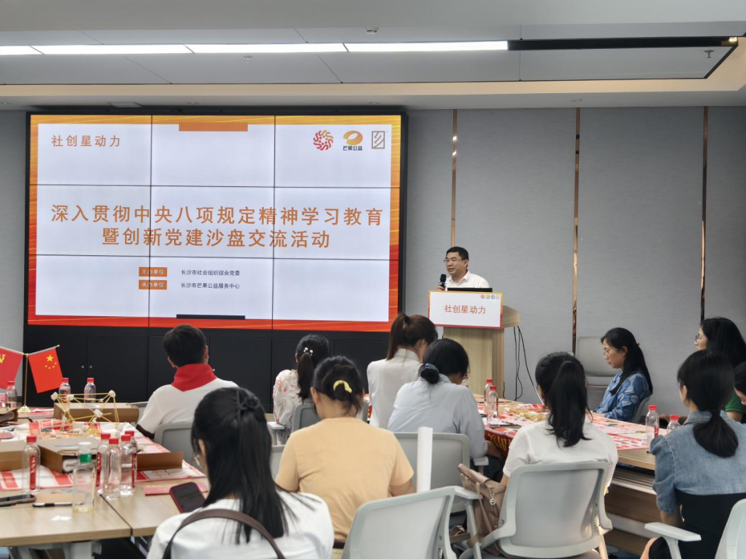 7月24日,长沙市社会组织发展中心多功能会议厅内,一场以“走好新时代的长征路”为主题的党建沙盘课程在此开展。本次活动由长沙市社会组织综合党委主办、长沙市芒果公益服务中心承办,长沙市社会组织综合党委所属40余家社会组织的党建工作负责人、入党积极分子齐聚一堂,通过“理论学习+情景实践”相结合的创新模式,推动党建教育走深走实。