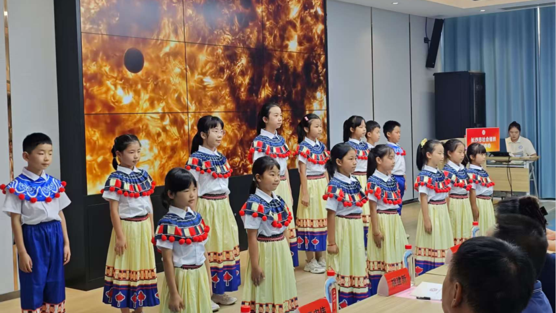 活动仪式上,社会组织代表长沙市爱乐青少年乐团打造的桐心合唱团的小朋友带来了精彩合唱《玉盘》。