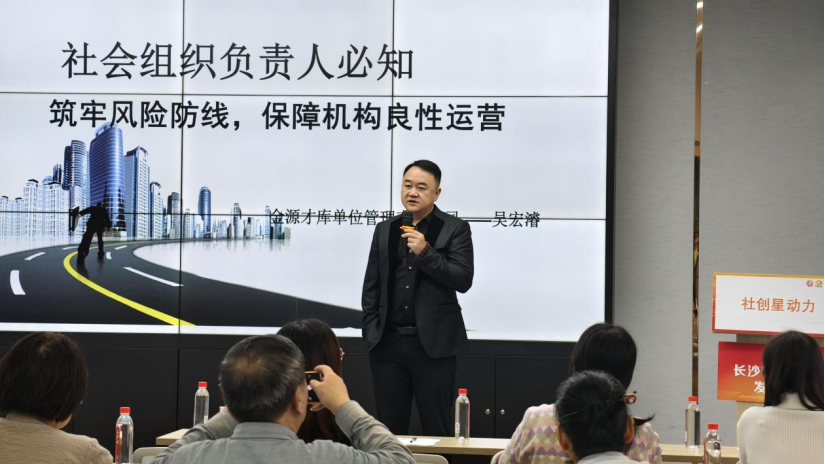 活动邀请长沙中培职业培训学校校长、人力资源和社会保障部创业导师、劳动关系协调师吴宏濬担任主讲嘉宾。吴老师带着服务近千家企业的实战经验,为大家系统梳理了社会组织用工中的高频风险点。包括常见的认知误区,如“以志愿者名义规避劳动关系”“试用期随意定薪”“兼职人员不签合同”等,并通过真实案例,让大家直观地感受到合理用工,构建风险防范机制的必要性。
